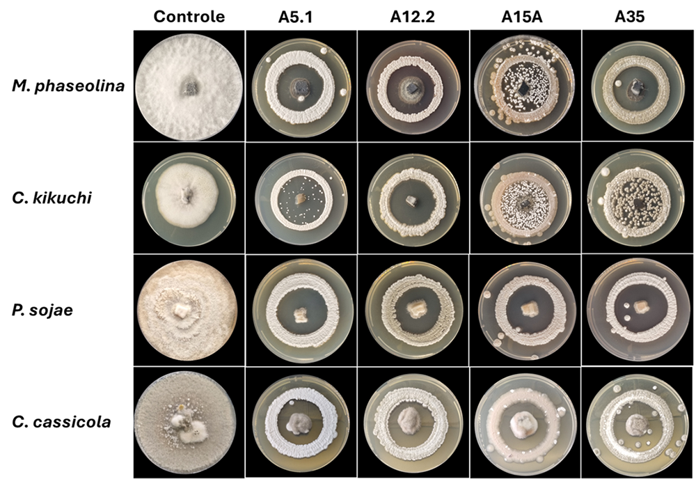A pesquisa realizou a triagem de 20 cepas de Streptomyces spp., isoladas das ilhas de Alcatrazes e Palmas, situadas próximas à cidade de São Sebastião, no litoral paulista, com potencial antagonista a importantes fitopatógenos da soja. Entre as doenças-alvo estão a mancha-alvo (Corynespora cassiicola), a podridão seca da haste e da vagem (Phomopsis sojae), a podridão de carvão da raiz (Macrophomina phaseolina) e a mancha púrpura da semente (Cercospora kikuchii).