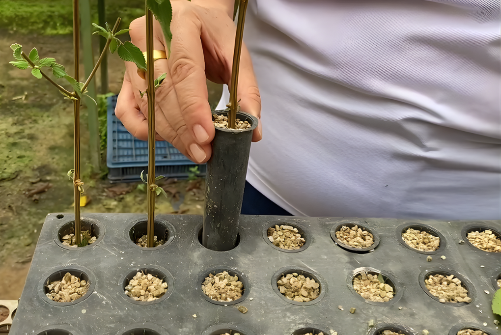 Para a formação das mudas, recomenda-se a coleta de ramos medianos das plantas matrizes, retirados entre 50 e 60 centímetros do solo. Entre os substratos testados, a vermiculita expandida — produto mineral com grande capacidade de retenção de água —apresentou melhor desempenho.