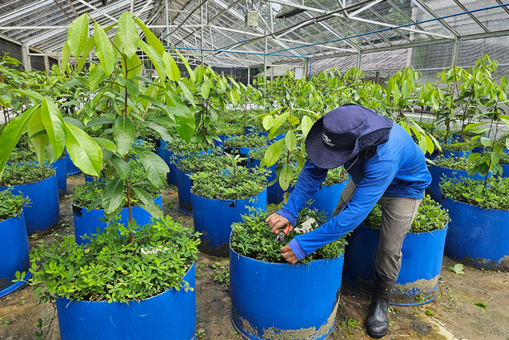 A pesquisa parte de uma população inicial de 80 árvores-matrizes localizadas na propriedade da empresa parceira Litiara/Agroflora, em Rio Preto da Eva (AM). Entre essas, foram escolhidas, inicialmente, as 10 com maior vigor e teor de óleo na biomassa superior a 1,5%, reproduzidas por sementes. Em novembro de 2025, foi iniciada a retirada dos galhos dessas plantas para a produção dos clones, por enraizamento de miniestacas (processo que usa pequenos pedaços de plantas (miniestacas) para que criem raízes e se desenvolvam em novas mudas idênticas à planta mãe), como informa o pesquisador da Embrapa Amazônia Ocidental Edson Barcelos, líder da iniciativa.
